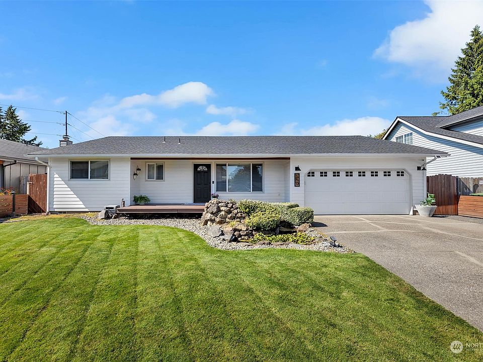 Updated ONE-level 3 bedrooms + OFFICE home with an open layout. Enjoy the second living room with a modern shiplap fireplace. The spacious kitchen offers granite countertops, stainless steel appliances, an eating area, and a walk-in pantry. The property includes a 2-car garage, attic storage, a large patio, a covered front deck, and comes with a washer & dryer! Peaceful water features with fish, great curve appeal, and well-maintained landscaping. Located in a highly desirable neighborhood, this move-in ready home is close to freeway access, Riverside Park, and minutes from Longview shopping. A must-see, call to schedule your showing!