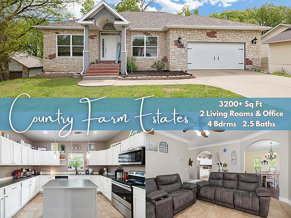 Welcome to Country Farms Estates -- where comfort meets convenience in this spacious Hollister home! Offering 4 bedrooms (one nonconforming), 3 baths, and multiple living spaces, this property is designed for both everyday living and entertaining.Step inside to soaring ceilings and an open layout featuring a formal living room, formal dining room, home office, and two inviting family rooms. The oversized primary suite boasts brand-new carpet, while the spacious kitchen is perfect for gatherings and meals.The fully finished walk-out basement adds even more flexibility with a large family room, wet bar, and two bedrooms -- an ideal setup for guests, teens, or multi-generational living.Recent updates include a new roof (2024), new carpet, and a large front window that floods the home with natural light. Outside, the property sits near the end of a cul-de-sac, offering peace and privacy, while still being just minutes from Big Cedar Lodge, Table Rock Lake, and Branson attractions.Don't miss your chance to own this beautiful Ozarks home -- schedule your showing today! SELLER IS MOTIVATED