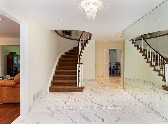 **Denlow PS School Area** Nestled On the bright corner and one of the best pocket of Banbury and Denlow in the heart of the Highly sought after and Prestigious Banbury-Don mills*** Family-Friendly, Tree-Lined Street & Easy access to All Amenities: Banbury Community centre, Top Rated Elementary Public schools and High schools, Private schools, Upscale Shopping at Shops at Don Mills, Stroll to Lovely parks and Gardens this remarkable Family Home has an approximate 60 foot frontage widening to 67 feet in the back, Private backyard. Greeting You A Double door main Entrance welcomes you in a nice foyer with a double door closet and a classic winding circular stairwell. Entering a massive Living Room & Open Concept Dining Room. Kitchen Combined Breakfast Area with a walkout to a lovely Green Garden. A nice Family room with a cozy fireplace adds to the charm of this house. Convenient Main Flr Laundry Room with a side door entry and a powder room completes the functionality of this main floor. The circular stair case leads to the second floor with generously proportioned rooms. The Layout Features On Second floor a Large Primary Bedroom with 5 Piece ensuite and Walk-In Closet. The additional 3 Bedrooms present ample family living space with an additional bathroom. Basement provides a Large Recreation Room, Game Room, corner Bar Area, Sauna, Lots of Storage Area and potential to revive a second kitchen as needed with an additional bedroom. The Brick Facade presents the timeless curb appeal along with a long driveway to accommodate 4 cars and a double car garage. Priced to sell..... this house will tick all your boxes. With some of your personal touches this is a gem for you to build your family memories for the next foreseeable future.... Not to be Missed.