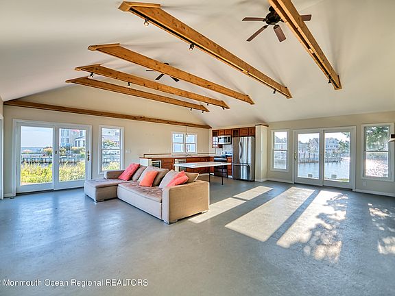 LOCATION, LOCATION, LOCATION, AT THE END OF THE STREET AND JUST ACROSS THE BAY FROM OLD BARNEY. DOUBLE CREEK CHANNEL TO BARNEGAT INLETIS LESS THAN 30 MINUTES TO OCEAN. 138 FEET OF WHITE BEACH SAND PRIVATE BEACH FOR YOUR LITTLE ONES TO PLAY ALL DAY PLUS A PUBLIC PLAY PARK FOR THE KIDS JUST ACROSS THE STREET. THIS HOME HAS 110 FEET OF VINYL BULKHEAD, PRIVATE BOAT SLIP AND A PANARAMIC BAY VIEW . FIRST FLOOR OF THIS HOME HAS LARGE GREAT ROOM FOR LIVING ROOM, DINING ROOM AND KITCHEN, CATHERDAL CEILINGS WITH BEAMS, CEILING FANS, ALL APPLIANCES ARE INCLUDED. BEDROOM AND PORCELINE TILE ALONG WITH A FORTH BEDROOM OR DEN AS WELL. SPIRAL STAIRES LEADING TO THE SECOND FLOOR THAT HAS ONE BEDROOM HAS WALL TO WALL CARPETING WITH PATIO SLIDING DOOR TO DECK ON BAY SIDE AND CATHEDRAL CEILINGS AND