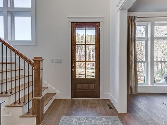 Bonterra's only basement home! A finished walk out basement with 1487 sf and unfinished storage area as well. This one has it all! 1.8 acre wooded homesite with a first floor in law suite featuring it's own stackable washer / dryer area, small kitchenette with cabinetry, sink, and under counter fridge. There's a flex room perfect for an office, 1/2 bath, open family room with sliding doors out to the screened in porch with a beautiful stone fireplace, gorgeous kitchen and a grilling deck. The Primary bedroom and 3 others are on the second floor. Primary bath has double vanities, freestanding tub and a huge walk in shower. This home also has a 3 car garage!