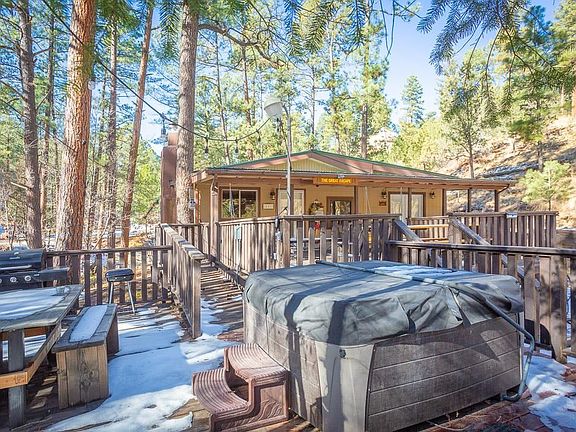 Currently used as a vacation rental, The Great Escape is just minutes away from the heart of Ruidoso & boasts a lovely cabin located on 1.25 acres (mol) in the towering pines of Brady Canyon, featuring a huge deck with hot tub, a creek, & abundant wildlife. Inside the cabin the amenities are endless & include everything you need to get away. All furnishings, appliances, linens, dishes, televisions, decor, etcetera are included. Just bring your clothes & toothbrushes & you're all set for an amazing time.
