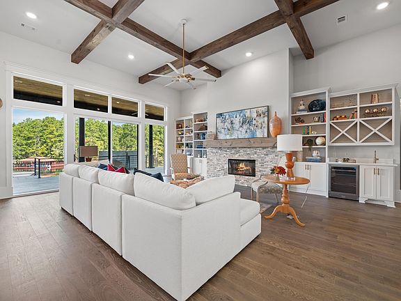 This home checks all the boxes: New Construction on Lake Hamilton, Deep Water and Expansive views, Highly Desired 7 South location and a Stunning Home with the appointments you are looking for. Beautiful wood ceilings and beams add charm to this open floorplan home that welcomes your family and guests. Large granite island in the chef’s kitchen, with custom cabinets throughout. Three fireplaces add to the warmth and coziness of this lakeside retreat. The primary bedroom features a vaulted wood ceiling, fireplace, and private coffee bar. Custom His and Her closets with plenty of storage and built ins. The primary ensuite has a luxurious Roman Double Shower and his and hers vanities and a soaking tub. All bedrooms in the home are ensuite. The outdoor living area is covered and has a fantastic outdoor kitchen. This home has a boat dock . POA is currently being formed, no financial or dues amount have been established but developer had indicated it should be like Blue Herron POA.
