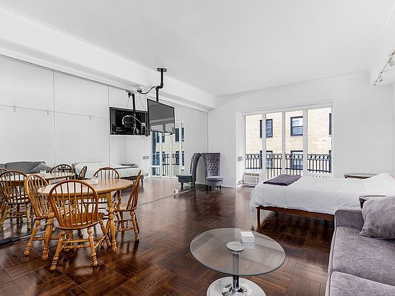 Please contact Luke Hawksworth directly for showings and more information. Make your home on Central Park in this exquisite studio designer showplace on storied Central Park South. Open 9-foot-tall ceilings and bright windows facing south an indelible impression in this stylish co-op. From the gracious entry, you’ll be drawn to the living space where a wall of windows opens to a charming Juliet balcony. The efficient kitchenette currently includes a counter-height refrigerator, dishwasher, and microwave oven. The double-doored closet opens for plenty of storage space with generous shelving and hanging room. The recently updated bathroom completes this move-in or pied-a-terra ready Central Park South gem. The Hampshire House is a stately prewar building completed in 1938 and converted to cooperative use in 1949. Today’s residents enjoy white-glove hotel-style amenities, including doorman and concierge service, a bell captain, live-in resident manager, housekeeping, fitness center, and spa, laundry, package room, safe deposit boxes, bike room, courtesy car, and parking. Pieds-a-terre permitted. Buyer pays 3 percent flip tax. From this commanding Central Park South location, you’re just inches from 840 acres of iconic outdoor space and Midtown accessibility. Enjoy front-row access to world-class shopping, five-star dining, and spectacular Theater District and Lincoln Center entertainment.