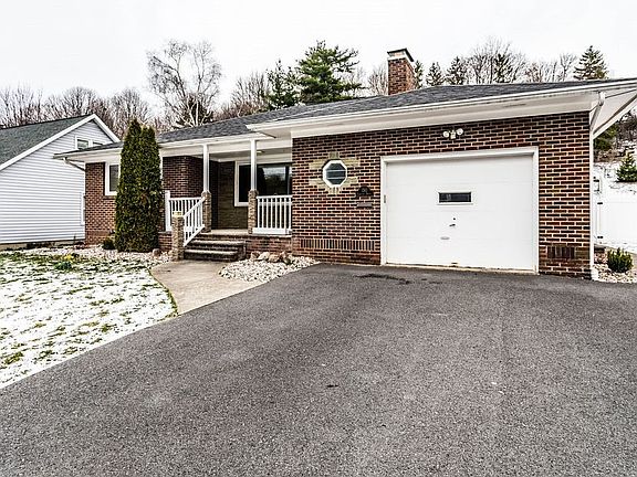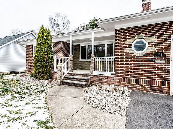 Welcome to 150 Century Drive! A distinguished brick ranch, set on a large lot with so much to offer.  This home features 2 bedrooms & 3 full bathrooms (YES 3!), along with newer furnace, central air, and a tankless hot water heater. Enter through the covered front porch into the charming entry hall.  From there, the large living room w/fireplace takes attention. Large windows drench the room with natural light. The hallway will lead you to the primary bedroom w/en suite and another spacious bedroom and full bath. Both bathrooms have been remodeled and updated. In the opposite direction, proceed to the eat in kitchen. There is a sliding glass door leading to the patio and huge fenced in yard.  The lot extends beyond the fence in the back, and further up the hill for even more. There is also a partially finished basement with another fireplace and full bathroom. This space is ready to be your personal touches and perfect for gatherings, office space, or game room. There is a finished space in the attic area as well, this has potential for an office or additional storage. Located close to grocery stores, highways, shopping and all your amenties - this home is a sensational opportunity