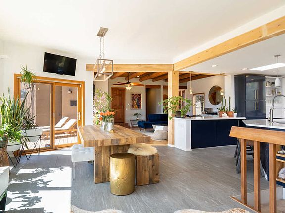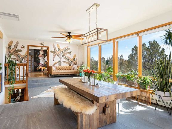 Welcome to one of Santa Fe's premier locations where you can live in the heart of the city all while nestled among the pinon and junipers of the high desert. Sited beautifully on 1.5 acres, with abundant views of the Sangre de Cristos/ski basin to the north, Sun/Moon mountains to the east, and framed by the backdrop of the Ortiz and Sandia mountains to the south, this property feels more like horse country, than the city of Santa Fe. At the end of a cul de sac, solitude and quiet are never in short supply. Constructed by acclaimed Dijanni builders, of Santa Fe, and fully remodeled over 8 months by Scott Irving of Wisdom Design Builders in 2018, this passive solar home is perched on the high point of the property with massive southerly views. The perfect combination of Santa Fe Style with large vigas, deep shade portals, and hardwood flooring, transitions seamlessly into the dreamy contemporary Chef's kitchen and open floor plan. Doubling the previous size of the kitchen during the remodel, the owners created the masterpiece of the home, adding even more windows, ceramic slate floors, 110 sq ft of white composite/quartz stone countertops and a 8 burner commercial Hallman stove w/ commercial hood. The garage is over-sized and has a heated 140 square foot workshop/studio. Call today for your private showing!
