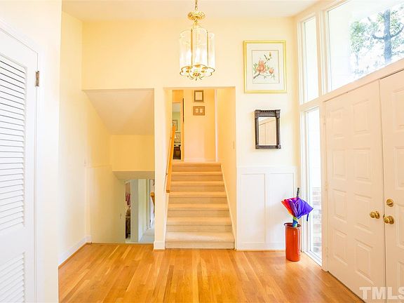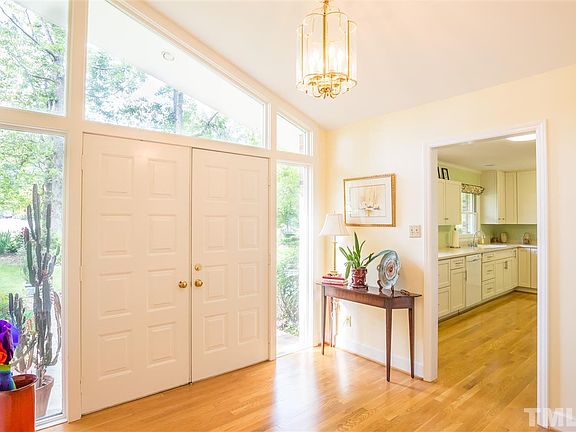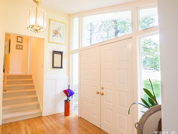 Must see! Friendly neighborhood out front, large forest out back and 10 minutes from downtown. Come see this unique and well-maintained property that has gleaming hardwoods, brand new carpet, natural light, Corian countertops and tons of comfortable living space. Beautifully landscaped yard (almost an acre) backs up to the forest. Have a glass of wine on the patio and see deer, owls, rabbits, birds and more! Walk through the backyard on a trail to West Point on the Eno. This lot and house has it all.