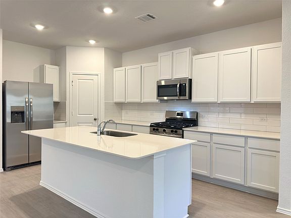Welcome to 150 Cibolo Creek Loop, a beautifully crafted single-story home located in the highly desirable Bandera Pass section of The Colony in Bastrop, Texas. Built in 2025, this 4-bedroom, 3-bathroom home offers approximately 1,913 square feet of thoughtfully designed living space with modern finishes and functional layout. The open-concept kitchen, living, and dining areas create a bright and airy feel, ideal for everyday living and entertaining. The kitchen features a large center island, granite countertops, stainless steel appliances, and ample cabinet space. The spacious living room flows effortlessly to the covered patio, making indoor-outdoor living easy and enjoyable. The private owner's suite is tucked away at the back of the home and includes a dual-sink vanity, walk-in shower, and generous walk-in closet. Two additional bedrooms share a full bath, while a fourth bedroom and third full bath offer added flexibility for guests or multi-generational living. Additional interior highlights include high ceilings, luxury vinyl plank flooring in main areas, plush carpeting in bedrooms, a separate laundry room, and a two-car garage. Situated in The Colony, residents enjoy access to community amenities such as walking trails, a fitness center, resort-style pool, playgrounds, a dog park, and scenic green spaces. The neighborhood is just minutes from historic downtown Bastrop, offering local dining, shopping, and entertainment. Convenient to Tesla, SpaceX, and The Boring Company, this home also provides easy access to Hwy 71 for commuting into Austin. Everyday conveniences like H-E-B Plus!, Buc-ee's, and local parks including Bastrop State Park are all nearby.