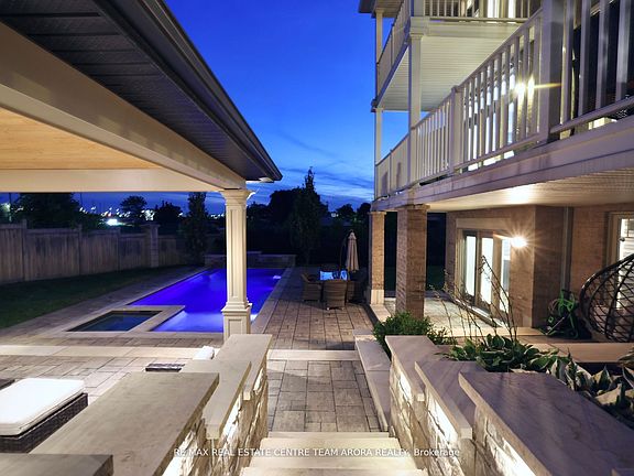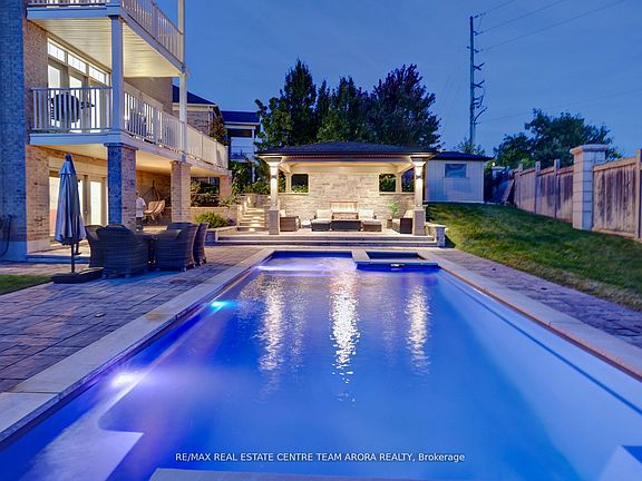 Heated poolBuilt-in deck jetsHot tubCustom gazeboOutdoor built-in outdoor fireplaceWalkouts to elevated patioSpa-like ensuite