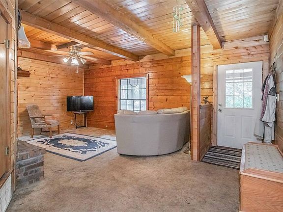 **MULTIPLE OFFERS** SECLUSION! TREES! 3 bedroom, 2 bath log cabin with A-frame attached is nestled in the woods waiting for some TLC. A-frame built first, log cabin added later. Over-sized Lennox HVAC installed in 2018 per seller. Original heating in A-frame works, per seller, has used a window unit to cool it. Range replaced 2018, well pump replaced in past 2 years, per seller. Cabinets custom made. Spiral stairs lead to loft upstairs; currently used as storage space, could be play area or crafting room. No photos taken of it. Workshop with electricity. Seller is willing to give buyer $5000 in closing costs with a reasonable offer. Seller is motivated. PROPERTY SOLD 'AS IS'. No repairs will be made.