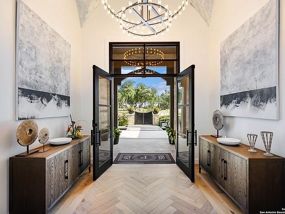 Modern meets Traditional in this brand new Transitional Estate. This estate sits on 3.75 acres sitting on one of the highest elevations in Cordillera Ranch. The views from this property demand your attention making them a focal point of the home and a conversation piece for sure. Built in 2022 this mostly one-story home boasts 4 bedrooms, a dedicated office, an exercise/flex room, and an open-concept living room and dining room full of natural light. The gourmet kitchen offers high ceilings, double ovens, a one-of-a-kind gas cooking range, a hidden butler pantry and full walk behind wet bar that overlooks the dining room. The master bedroom is a true getaway from the business of the day. Long range views, outdoor access, a smart bathroom with a bathtub sitting under the window to also take in the views. A wardrobe area/sitting area greets you as you enter your closet. Wrinkles!? Just hang your clothing inside the built in steamer. Each master closet offers its own built in steamer. Two secondary bedrooms have a bathroom equipped with a double vanity and smart features. Basically two mini-master bedrooms make up 2 of the 3 secondary bedrooms. The utility room actually makes you want to do laundry! This space was created for the person who needs their own work space offering organization in one location instead of throughout the home. The outdoor oasis is unlike anything you have ever seen. 2800+/- square feet of covered outdoor living and cooking. Also, 2800+/- square feet that can be closed off from the elements with drop down screens fully enclosing the 2800 square feet. Heaters built into the ceiling warm the entire 2800 sqft or built in misters can cool the 2800 sqft. The 50' by 30' resort style pool has built in seating dedicated to take in the long range views the property offers. A swim up bar with built-in seating, a rain curtain waterfall coming from one of the pergolas that cover outdoor seating next to the pool. The 16' by 19' elevated spa with spill over edges compliments the pool and is also covered for year round enjoyment. 15,000 square feet of professional landscaping around the entire estate with a putting green/several chipping locations, a dedicated turfed dog yard and stadium zyosia that is plush and designed to grow slowly for less yard maintenance. Relax around one of the 4 fire-pits in your backyard and take in the long range views this amazing property offers.