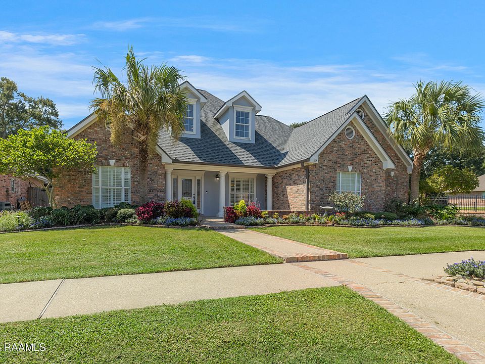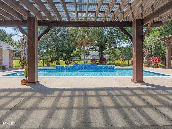 Just in time for football season so let's start outside! Whether its watching the game next to a cozy fire under the screened in pavilion or enjoying the grill under the pergola, this backyard has it all! Let the kids splash in the gunite pool with water fall features while the elders enjoy the air conditioned pool house with bathroom. You just might get the teens outside to play some flag football in the additional 1/4 acre lot, which features a brick and wrought iron privacy fence. Best of all, the backyard neighbor is an 11 acre estate allowing you relaxing country views and quiet privacy. Located at Fortune Rd/Verot School Rd in Beau Parterre Subdivision, you will enjoy easy access to the city vibe of Lafayette with the charming amenities of Youngsville. Interior floor plan features Primary bedroom and guest room/office downstairs, each with en suite baths, 2 bedrooms upstairs with a jack & jill bath, separate formal dining, open kitchen, living and breakfast area, sunroom/office overlooking the pool and large utility. Entire home has been freshly painted with new carpets installed as well as a 3yr old roof, AC and water heater.