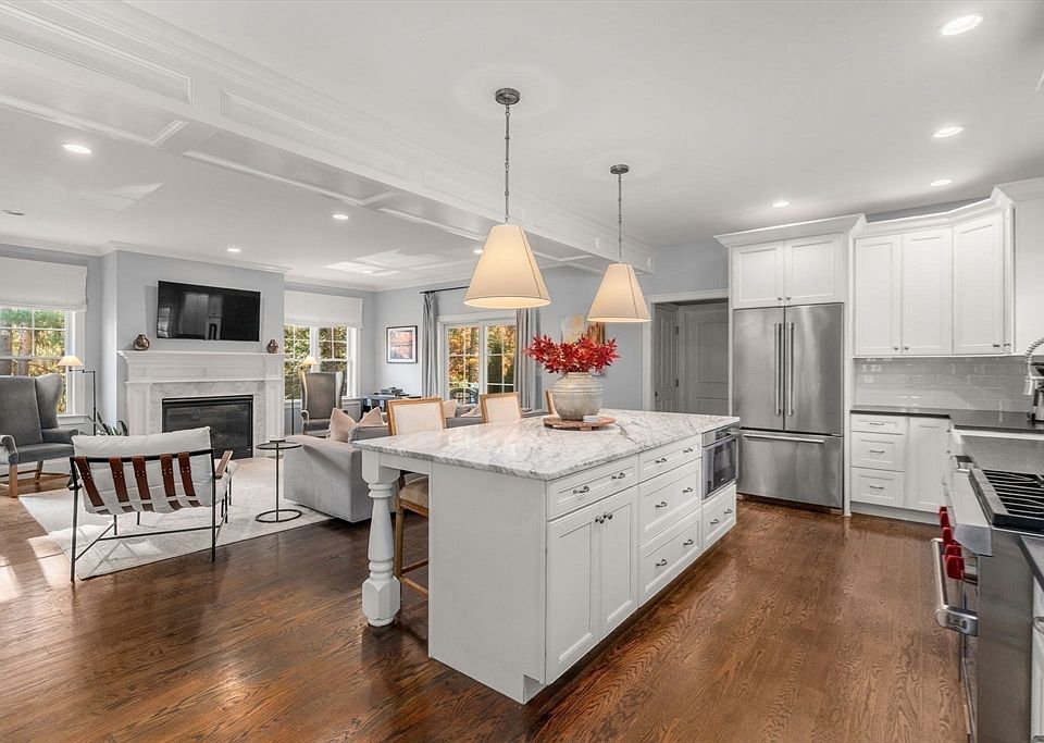 Set on a beautifully landscaped acre surrounded by nature, this 3,560 SF Colonial blends timeless design with modern comfort. Custom built in 2013, the home features 3/4 bedrooms, 3.5 baths, and a versatile floor plan for everyday living and entertaining. The main level offers a sun-filled home office, eat-in kitchen with high-end finishes, a walk-in pantry, all opening to a family room with fireplace, plus formal dining room. The second level features a spacious, light-filled primary suite with a spacious walk-in closet and a spa-like bath with soaking tub and double vanities. Two additional generous bedrooms share a full bath, and a third-floor bonus room with a full bath provides flexible living space and a guest room. An added bonus is the wonderful hiking trail leading to the Charles River for the boating enthusiasts! This home combines a great design along with luxury, and New England charm. Excellent commuting location! Close to Needham, Dedham and two trains.