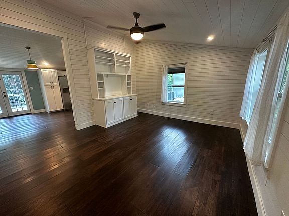 Spacious fenced backyardLarge deckHardwood floorsOpen floor planAmple natural lightShiplap wallsStainless steel appliances