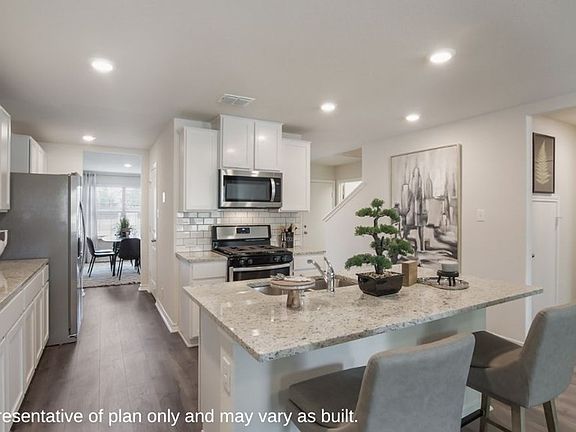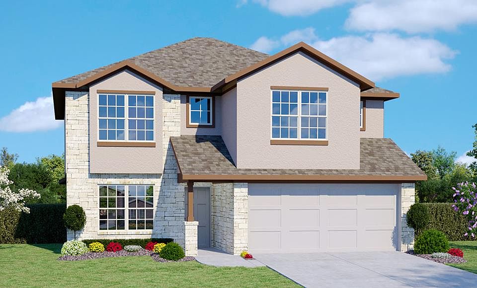 Introducing The Lombardi, a two-story home featured in our High Garden community in Comfort, TX. This floor plan offers 3 classic front exteriors, and a 2-car garage. Inside this 5 bedroom, 2.5 bathroom home, you'll find 2539 square feet of open-concept living. A deep-set, covered porch (per plan) opens to a foyer, formal dining room, and powder room. A butler entry connects the dining room and spacious kitchen lined with abundant cabinetry and quartz-top counterspace. Classic white subway tile backsplash and stainless steel appliances are a perfect accent, and a kitchen island with a deep single basin kitchen sink faces the living room. The private main bedroom suite is located off the living room and features a luxurious garden bath tub, a separate walk-in shower with tile surround, double vanity sinks, ceramic tile flooring, a separate door for the toilet and a large walk-in closet. Head up the stairs and tour the second floor of your brand new home! A versatile loft area greets you at the top of the stairs, complete with quality carpet and tons of natural light. Your four secondary bedrooms are located off the loft and include carpet flooring and spacious walk-in closets. Additional features include 9-foot ceilings, 2-inch faux wood blinds throughout the home, luxury vinyl plank flooring in the entryway, living room, kitchen, and dining room, ceramic tile at all bathrooms and utility room, pre-plumb for water softener loop, and more! You'll enjoy added security in your new home with our Home is Connected features. Using one central hub that talks to all the devices in your home, you can control the lights, thermostat and locks, all from your cellular device.