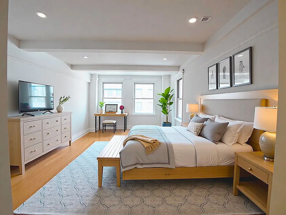 Great natural lightVersatile layoutGenerous closet spaceLarge windowsBright and functional studio