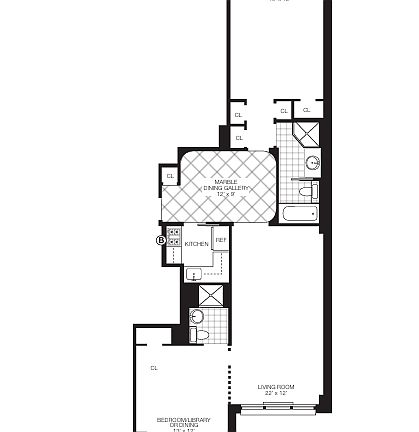 This spacious, high floor two bedroom, two bathroom apartment boasts two exposures; a South-facing balcony off the primary suite and the living room and second bedroom face North. The dining foyer accommodates up to a six person table and the nearby kitchen with a pocket door for privacy. Both bedrooms have en-suite bathrooms. The primary bathroom has both a oversize shower, and a tub shower, with a pocket door separating the space. Plenty of closet space.