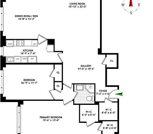 A gracious entrance foyer opens to a generously proportioned living room and formal dining room which extends onto a private terrace, perfect for both entertaining and everyday enjoyment. The oversized windowed kitchen has a washing machine and dryer. The two bedrooms are well separated from the entertaining areas, offering privacy and a tranquil retreat. With six closets, that include three walk-ins, this home provides exceptional storage. The original hardwood floors have been beautifully maintained and the windows have been replaced.
