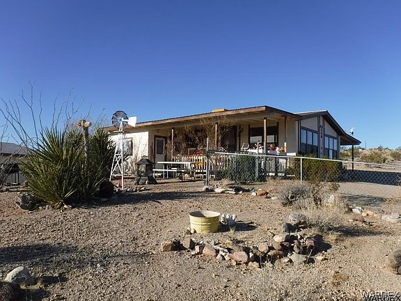 Live the high life with 360 Degrees Views of Arizona, Nevada and Utah! Built with best use of the land in mind on a perch facing the Grand Wash Cliffs of the West Rim of the Grand Canyon. Conveniently located on paved roads near downtown area of Meadview. Open Living, Dining and Kitchen Area with Bar Counter for entertaining. Original 2Bed/2Bath Home has 2 Add-Ons permitted for optional living space. New Metal Roof. Front Raised Deck with Jacuzzi and Covered Back Patio provide excellent sunrise and sunset viewing. Master Bedroom has private Deck. 2 Hot Water Heaters - One Solar. Garden Shed and Oversized Boat Deep Garage. Fenced Front Yard. Near Launch Ramp to Lake Mead for great boating and fishing. Quad Trails throughout area. Clubhouse available with Pool, Tennis and More!