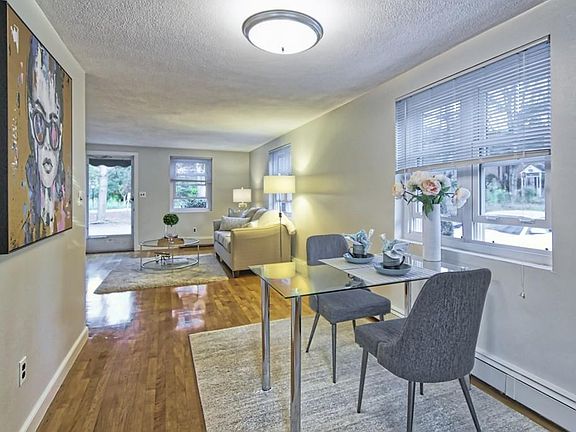 Welcome to Emerson Gardens! This very desirable sun-filled end unit has private front and rear entrances as well as assigned parking just steps from your door. Tucked away in the back, this townhouse features an open living/dining space, two generous bedrooms and a partially finished lower level with in-unit washer/dryer. There are replacement windows and hardwood floors throughout. The grounds are beautifully landscaped and the outdoor pool is professionally maintained. Enjoy the green spaces and close proximity to the bike path, Mass Ave. commuter routes, and everything that historical Lexington Center has to offer. All rooms are freshly painted and move-in ready. Homeowner fee INCLUDES heat and hot water. Don't miss this one!