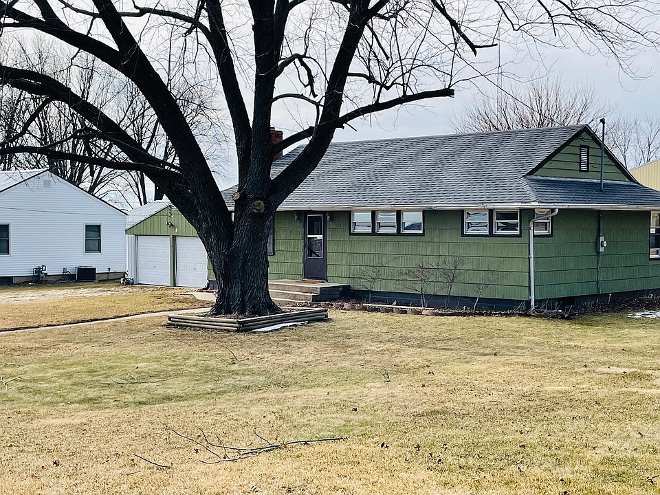 This ranch home sits on a huge half acre corner lot in small community north of Rochelle. 3 bedrooms, 1 bath, laminate floors, living room with wood burning fireplace. The unfinished basement with additional fireplace is ready for you to make it your own! there is also a 2 car detached garage. Appliances stay. Walk down the street to the park or enjoy the bike path that will take you to the high school or into town. Property is being sold AS-IS. New roof on house in 2018 and new garage roof 2020.