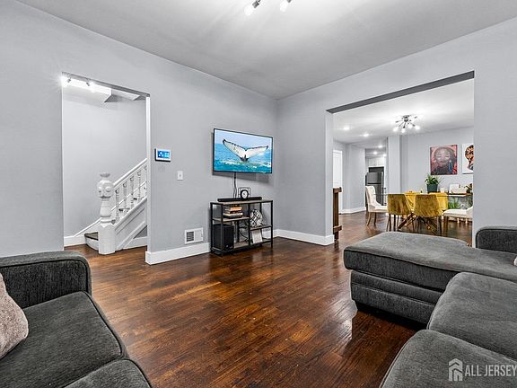 This massive 4-bedroom, 2-bath home offers over 2,500 sq ft of living space, blending a classic layout with thoughtful modern updates. Enjoy separate living and dining rooms with hardwood floors and recessed lighting. The updated kitchen features modern cabinetry, sleek counters, stainless-steel appliances, and gold hardware accents. A finished attic adds flexibility for an office, studio, or guest space. Both bathrooms have been updated with clean tilework and contemporary fixtures. The covered front porch and private rear yard offer great spaces for outdoor enjoyment, while the full basement provides additional storage and future finishing potential. Approximately 30-40 minutes to NYC via nearby public transportation. Conveniently close to parks, schools, shopping, and local amenities. An underground oil tank was previously on the property and has been professionally addressed, with documentation available upon request. Owner-occupied; will be delivered 100% vacant at closing for a smooth transition. Massive layout, modern upgrades, and a prime Newark locationschedule your showing and bring your offer today!