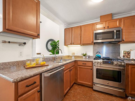 Very clean upper unit, 2 bedrooms, 2 bathrooms, 939 sqft, open family room with vaulted ceilings, spacious bedrooms, windows with shutters, crown molding, updated flooring, bathrooms with quartz countertop, and updated paint. Appliances in kitchen remain. Large size laundry room, Nice rear balcony with privacy. Outdoor carport with storage and porch closet.