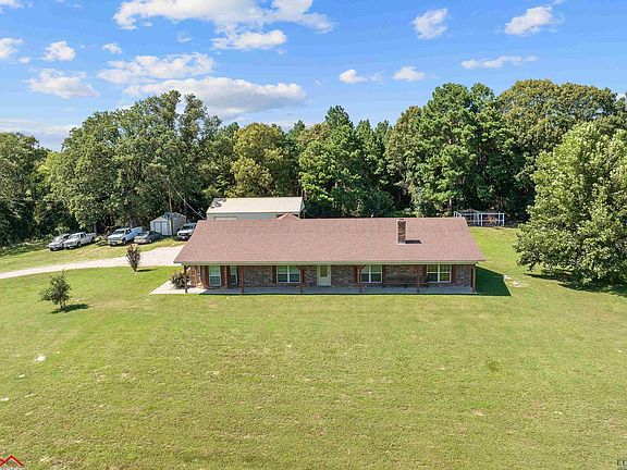Welcome to one of the best front porch views in east Texas. Nestled on 5+ acres near the highly accredited HISD schools, this four bedroom, three bath ranch home has ranging hill top views overlooking the Harleton's main street. This home boasts a split master bedroom, master bath with large soaker tub, separate walk-in closets, and a large vanity. The common spaces have vaulted ceilings in the living room with exposed central beam, a wood burning fire place, mud room, breakfast bar, dining room and spacious kitchen. The guest wing of the house has two full baths and three bedrooms. On the beautiful grounds you will find a 30X30 insulated workshop, nicely appointed pool with deck, and a chicken coup. The home was been recently updated with new carpet and paint throughout, and a new roof. Set your showing today!