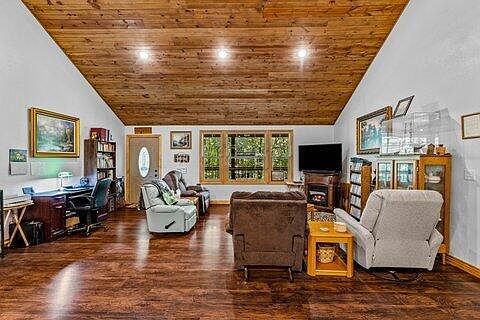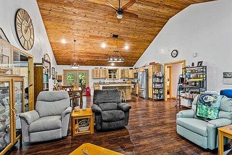 Enjoy ultimate relaxation and privacy with this beautiful 3 bed/2 bath home on almost 5 acres of a beautifully wooded property! The home offers a split bedroom floor plan and HUGE living area, kitchen and dining area, complete with a vaulted ceiling. You'll also love the beautiful sunroom to enjoy the view, complete with a wood-burning fireplace. The peace and quiet this property offers is second to none. You can enjoy that by sitting on the porch that runs the entire length of the front of the house or the giant back deck. There's even a storm shelter that will fit the entire family! If you want to get out with the public, you can access the beautiful James River just 10 minutes away and Table Rock Lake just 15 minutes away.