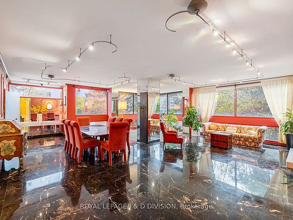 Nestled in an iconic luxury boutique building, well-situated in Forest Hill, this extraordinary residence offers both space and opportunity. Spanning two suites, this 3 bedroom plus library, 3 bathroom condo, with 3 parking spots, offers over 3100 square feet of living space. The expansive open concept living, dining and den, is bathed in natural light from floor-to-ceiling windows, offering tree-top views from all vistas. An updated kitchen with high-gloss blue cabinetry, granite countertops, and upgraded stainless steel appliances bring modern artistry to the home, while a walk-through pantry and dedicated laundry closet add everyday practicality. Three serene bedrooms offer privacy and comfort. The first, tucked behind designer pocket doors, features a four-piece ensuite and a wonderful west picture window. Down the wide hallway, an oversized library provides wall-to-wall custom built bookshelves and a picture window overlooking the lush greenery. The sunken primary suite feels like a private spa with two sets of closets, wall-to-wall windows, a dedicated solarium, and a six-piece ensuite with double sinks, a soaking tub, and separate shower. A third bedroom with ensuite completes the space. Throughout, generous proportions and thoughtful details evoke a sense of enduring elegance. Life here is effortless - with five-star amenities including a newly redesigned lobby, 24-hour concierge, fitness and party rooms, guest suite, valet parking, and car wash. Close to UCC, BSS, The York School, and perfectly located at Avenue and Heath, this home offers the best of city living within the quiet grace of Forest Hill.