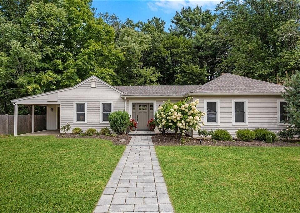 Exceptional Craftsman-Style Ranch set on almost an acre of beautiful land in the desirable Ridge Hill area of Norwell. This home has been completely updated with quality finishes over the past few years with updated kitchen and baths, central air, new windows and doors and many more thoughtful design upgrades all with a nod toward maintaining the charm and character of a 1940's craftsman design - but New! The home is warm and inviting with beautiful hardwood floors, master bedroom with walk-in closet and a sun splashed three-season room overlooking the spacious, wooded private yard. The bonus rooms in the lower-level put this property over the top offering a roomier feel with about 500 sq.ft. of flex space to the ranch-style living. Outside features include custom stone walkways, expansive patio area with fire pit and a carport. Sidewalks to Cole Elementary School! Easy and efficient access to highway, commuter rail, schools, shops, restaurants and all that Norwell has to offer!