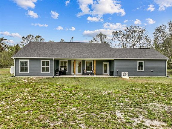 Exquisitely crafted in 2023, this hurricane-resistant 2-bedroom, 2-bath residence is nestled on 12 pristine, high-and-dry acres—offering unmatched privacy, abundant wildlife, and the peaceful seclusion of true country living. Thoughtfully designed with an open concept, the interior features warm pine ceilings, premium laminate flooring, plantation shutters, and a chef-inspired kitchen adorned with a striking blend of granite and soapstone countertops. The oversized island with a gas Whirlpool stove serves as the centerpiece, complemented by custom soft-close cabinetry, stainless appliances, garbage disposal, and an on-demand hot water system. The luxurious primary suite boasts a spacious walk-in closet and an impressive spa-like tiled shower, while both bathrooms showcase beautiful tile flooring and refined finishes. Modern comforts continue with a whole-home water softener system, a double-car garage, underground utilities, and multiple outbuildings—including a large pole barn with RV hook-up and a versatile utility shed. Perfectly positioned on a paved road and just minutes from shopping, a state-of-the-art hospital, and a charming historic downtown, this exceptional property is also only 20 minutes from Florida’s longest stretch of undeveloped Gulf coastline and 60 miles from Tallahassee. Experience the ideal blend of modern elegance, rural tranquility, and effortless access to Florida’s natural beauty.