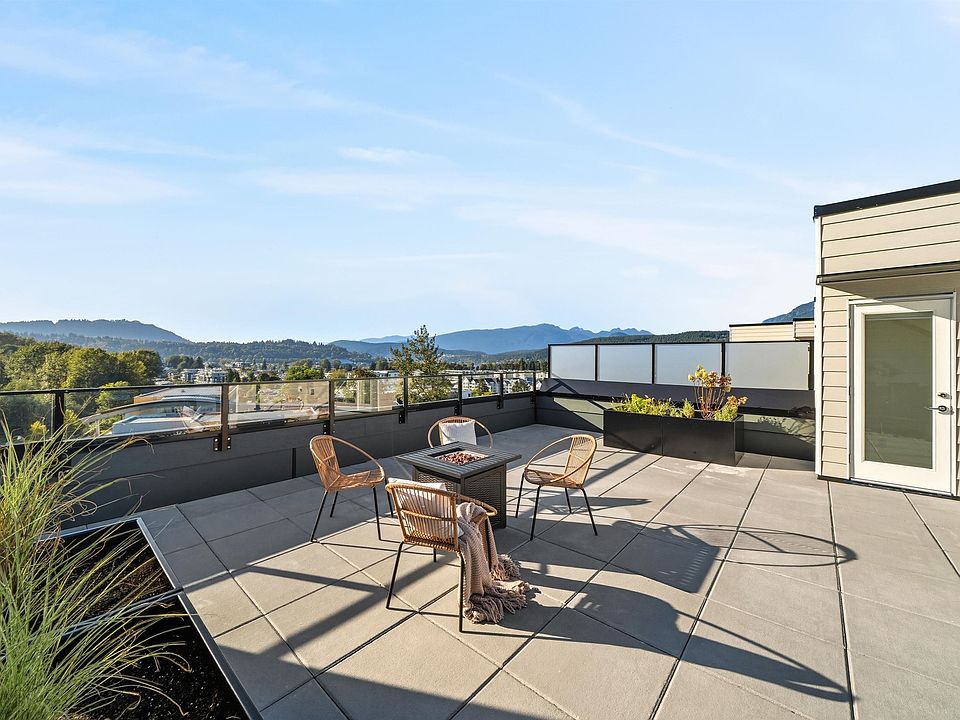 One-of-a-kind 2 Bed + Flex home in the vibrant Port Moody! Stunning ocean and mountain views from your private 654 sq.ft. rooftop patio (roughed-in for a hot tub) and covered balcony. This 946 sq.ft. modern home features 9’ ceilings, quartz counters, marble porcelain tile, luxury vinyl flooring, stainless steel appliances, and a large pantry. West-facing & gorgeous sunset views. Comfortable living with forced air heating and cooling. Amenities include a gym, yoga studio, co-working space, kitchen/lounge, rooftop terrace, pet wash, and bike repair station. 1 EV parking & 1 locker. Located on a quiet street and just steps to local cafes, shopping, SkyTrain, breweries, trails, and Rocky Point Park. Book your showing today! Open House Saturday Oct. 4th from 2-4pm.
