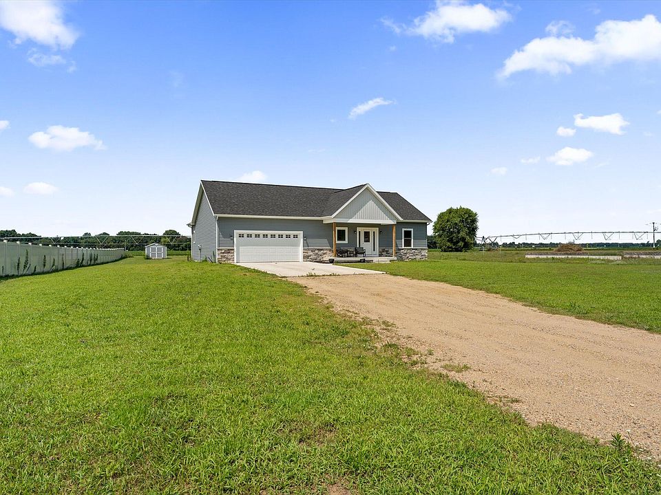OPEN HOUSE Wednesday Aug 13, 5-7:00 pm Here it is!! A Newer RANCH built in 2023 located close to everything in charming Falcon Cove Subdivision. The moment you step inside you will be captivated by the openness, the airy feel of white cabinets, the cathedral ceiling and the sprawling center island that welcomes everyone to come in and stay a while! The split floor plan offers the expansive primary bedroom with lovely modern tiled walk in shower. The living room is stunning with the large sliders that welcome great views of the very spacious yard! The unfinished lower level is ready for your final touch and has 2 egress windows on each end to offer absolute living space! New RANCH'S are hard to find, this one is quality and very thought out.