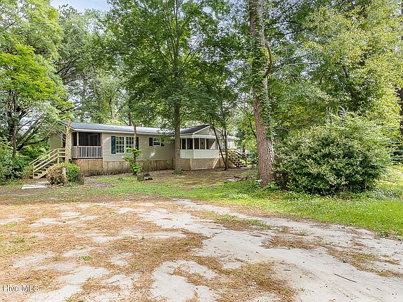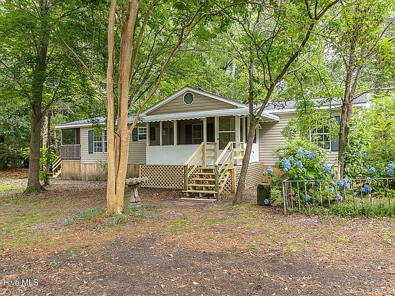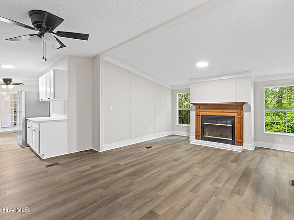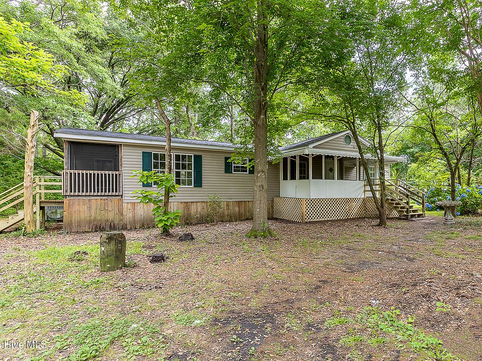 Discover this beautifully renovated 3-bedroom, 2-bath home tucked among mature trees in a peaceful New Bern setting. Step inside to find a bright, modern interior featuring fresh paint, brand-new flooring, and recessed lighting throughout. The open floor plan seamlessly connects the living room with its cozy fireplace and elegant mantle to the kitchen, creating an inviting space for everyday living and entertaining. The kitchen offers crisp white cabinetry and sleek stainless-steel appliances, perfect for both casual meals and gatherings. The spacious primary suite includes an ensuite bathroom with a freestanding soaking tub and a walk-in shower. Two additional bedrooms share a full hall bath, and a dedicated laundry area adds convenience. Enjoy the outdoors year-round from the screened porches at both the front and back doors, overlooking the serene .38-acre lot. Located just 14 minutes from shopping, dining, and the mall and only 12 minutes from the airport, this move-in-ready home offers the perfect blend of privacy and convenience. Don't miss your chance to make this peaceful retreat your new home!