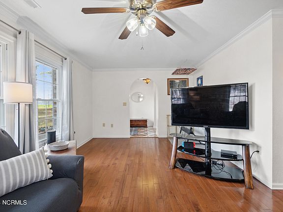 Located in the charming Keeter Barn Road neighborhood, this delightful home offers a perfect blend of coziness and elegance. Boasting 3 bedrooms, a bonus room, sunroom, and well-designed full bathrooms, this residence is ideal for those seeking a serene haven just 7 miles from the Virginia Line. Meticulously cared for, the home features recent updates including a new roof in 2021 and an HVAC system less than 8 years old. Upon entering, you'll be greeted by the warmth of hardwood flooring in the living areas, creating an inviting ambiance. The kitchen has been beautifully updated with modern accents, featuring stainless steel appliances and an abundance of counter space, making it a dream for culinary enthusiasts and entertainers alike. The outdoor space is equally impressive, with a generous lot adorned with productive grapevines, a large fig tree, and young apple trees poised for future harvests. The oversized 2-car detached garage provides ample storage space. A large fire pit in the backyard for entertainment. The location of this home is a true gem, with residents enjoying the convenience of nearby restaurants, shopping in Chesapeake, and the perfect balance between suburban peace and urban accessibility. Don't miss the opportunity to make this enchanting home yours!