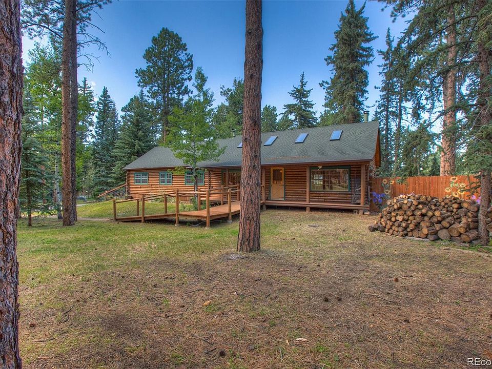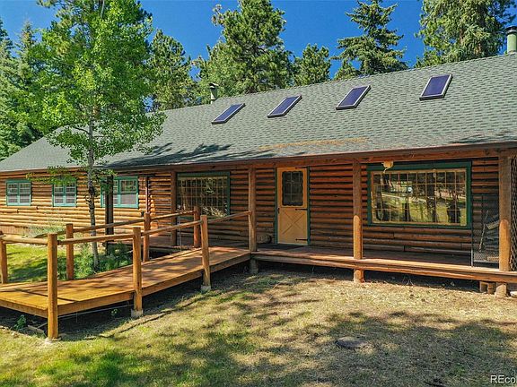Just imagine.. a perfect Colorado Log Cabin Homestead... A large lot with ample level space, greenhouse, chicken coop, mature trees, lots of yard space, and a ton of storage. What if you found it among convenient amenities of in town living? Here it is! This traditional log cabin home is full of charm and comfortable living. The main level is highly desirable with large great room featuring windows that wrap around the home offering abundant natural light. The living room is spacious but also cozy with vaulted ceilings and wood fireplace. An updated kitchen with granite counters, stainless steel appliances, and a large island is ideal for any cook who wants to be in the middle of the living and entertaining going on as it faces the dining area and is open to the living room. A custom mural in the back entry area reminds you at every glance the beauty of Colorado living. An owner's suite is at one end of the home with it's own bathroom. The main floor also features two more bedroom and another bathroom. Downstairs is a full basement with it's own convenient access, perfect as a separate living space for rental or an in-law apartment. A large family room, bedroom, half bathroom, and large semi-finished space in the basement level offers ultimate versatility for use- including having a future full separate kitchen and two back room offices. The spacious deck is perfect for enjoying the outdoors and wired for a hot tub. A large detached garage has plenty of space to park two cars plus a separate workshop! Two additional storage sheds round out the amazing features of this home. Extra space for RV parking. A front wheelchair ramp provides easy accessibility to the front porch and into the home. Easily walk to the local schools, the elementary school is just right across the street with others just down the road! Close to stores, restaurants, and outdoor recreation. Don't miss it!