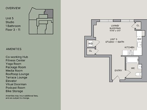 - Exterior features: Bicycle storage, Broker Exclusive, Fios Available, Garden, Guarantors, Leed Registered, Media Room, No Fee, Package Receiving, Public Outdoor Space, Recreation Facilities, Roof Rights, Roofdeck, View Type: Skyline View