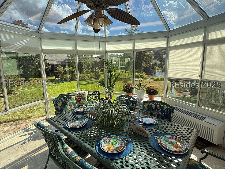 Make this home your FIRST STOP! Bright beautiful Bayberry! Best value for your money. Over 20K worth of recent updates! Owner is offering $2,000 towards your closing costs! KITCHEN REMODELED with newer appliances . UPDATED BATHS! All hard surfaced flooring! NO CARPETS! BLINDS in most rooms. Spacious Primary Suite w/walk-out bay large walk-in closet with a lot of storage, Second bedroom with room for desk/office adjacent to hall bath. Enjoy the year round (heated/cooled) fabulous glass ATRIUM SUNROOM with tall glass ceiling with fan overlooking the gardens and pond, creates plenty of extra space for entertaining, tiled floors exit to new brick paver patio for easy grilling and serving. Inside Laundry Rm with extra space and 2 Car Garage w/extra space for golfcart w/outlet. Sprinkler system with a new control and timer. Brand new HVAC unit. This well cared for home is located on a quiet street with manicured gardens. Newer roof and recent stucco report. It's a must see and ready for you to move in!