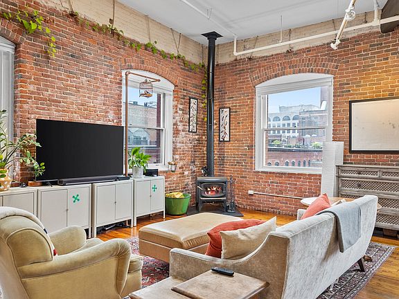 Welcome to 150 Lincoln Street U:6A, where historic charm meets modern comfort. This stunning 3-bedroom, 2-bath penthouse loft features exposed brick walls, soaring ceilings, and oversized windows on two sides that flood the space with natural light. The open-concept living area boasts a custom-built bookcase, fireplace, and original hardwood floors. A chef's kitchen equipped with stainless steel appliances, granite countertops, and a spacious island flows seamlessly into the living and dining area perfect for entertaining. The primary suite includes an en-suite bathroom and ample closet space. Additional highlights include in-unit laundry, central AC, and stylishly renovated bathrooms with heated floors. Located close to South Station, the Financial District, and some of Boston's best restaurants and cafes, this professionally managed elevator building offers the ideal mix of convenience and sophistication.