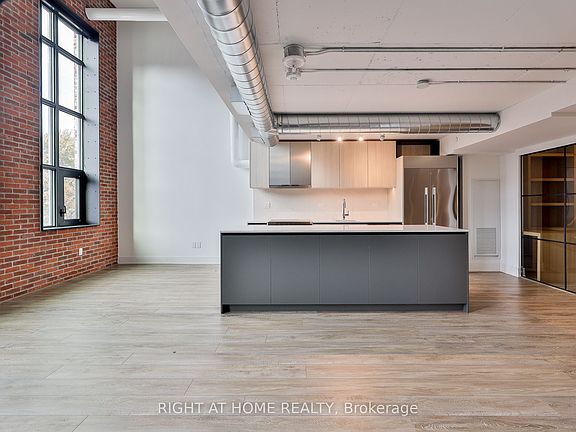 Something truly special at Wonder Condos - a sun-filled heritage loft with ideal west exposure, dramatic 17-foot ceilings, and original character throughout. Nearly 1,500 square feet of exceptional living space framed by soaring windows with integrated blinds, warm red brick accents, and a flexible floorplan accommodating up to three bedrooms. The upper loft is devoted to a serene primary suite with a generous walk-in closet and spa-like ensuite with dual vanities. A sprawling chefs kitchen anchors the main level, featuring an oversized island, abundant storage, premium appliances and induction range. Currently, the main floor includes a large office with custom built-ins and walk-in closet (easily reverted to a bedroom) plus a comfortable den, once a third bedroom. A full bathroom serves this level. Life at Wonder Condos offers a dynamic blend of history and modern convenience, with vibrant amenities including a rooftop terrace with BBQs and fire pits, co-working space, dog-wash station, well-equipped gym, and kids party room. Steps to the shops and dining of Queen East, and moments to Ashbridges Bay, Lake Ontario, and easy downtown/DVP access. An evolving neighbourhood within easy walking and cycling distance to the new Port Lands, Biidaasige Park, and the upcoming Ontario Line just blocks away. Exceptional space in a remarkable community.