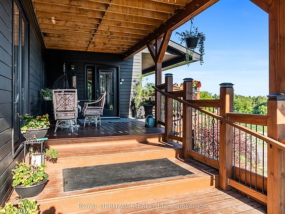 Welcome to 150 Long Reach Road, a rare opportunity to own a newly built (2024) country residence designed with both modern comfort and true off-grid resilience. Nestled on 31 acres of unspoiled land (21 acres of mature forest and 10 acres of open fields) this estate offers unmatched privacy, breathtaking hilltop lake views, and a lifestyle surrounded by nature and wildlife. This sprawling 5-bedroom, 5-bath home showcases extraordinary attention to detail. Inside you'll find four full kitchens plus a kitchenette, each finished with elegant stone counters, including African Quartz in the main kitchen. Smart-home Lutron lighting and blinds, new trim throughout, and a heated three-car garage elevate daily living. Multiple living spaces allow for multi-generational families, entertaining, or income potential. Engineered for sustainability and peace of mind, the home is powered by a 400-amp underground hydro service with multiple distribution points, a Generac backup system, propane, wood heat, and a 3,000-watt wind turbine. Two fresh-water wells with holding tanks and a gravity-fed trickle system ensure a continuous year-round supply from a pristine aquifer. A4 insulation keeps the home efficient and comfortable in all seasons. Step outside to nearly 3,000 sq. ft. of covered deck and concrete patio space, perfect for gatherings framed by sweeping lake views. Trails lead directly from your backyard into forested acres, while the newly installed RAP road guarantees reliable year-round access. Security monitoring adds another layer of comfort, making this estate as practical as it isbeautiful. Whether you're drawn to a private retreat, a multi-family residence, or a self-sufficient homestead, this home embodies elevated living, true resilience, and the serenity of nature at your doorstep. Conveniently located near Highway 401, downtown Brighton, and Presqu'ile ProvincialPark.