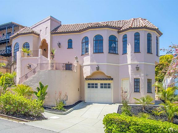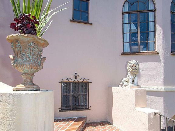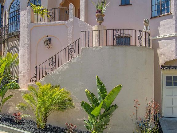 Magnificent Spanish Mediterranean view home tucked away on wonderful tree-lined block! Beautiful landscaped garden entrance leads to an arched portico & into an impressive foyer w/coat closet. Spectacular formal living rm w/vaulted barrel ceiling, wrought-iron gates, stately fireplace w/exquisite Moorish-style design & tile surround, stunning Palladian windows, period wall sconces & gleaming parquet hardwood floors. Majestic banquet-size formal dining rm w/gorgeous double doors, striking crystal chandelier, elaborate plaster moldings & phenomenal 12-panel wall mirror! Fabulous gourmet kitchen w/huge sep breakfast rm & views to the garden showcases top-of-the-line appliances incl a Thermador gas range-top w/splendid hood, separate built-in Miele double oven & Fisher & Paykel dishwasher, granite counters, amazing custom cabinets w/slow-close & specialty drawers, pantry & an incredible wine bar w/135 bottle temperature-controlled wine fridge. Sumptuous master suite w/turret sitting rm/office, 8 arched windows, 3 closets & a snazzy black tile bath w/cast-iron tub & separate walk-in shower. Huge laundry rm w/tremendous storage, wine cave w/built-in racks. Fantastic walk-out landscaped backyard w/tradesman's entrance, expansive deck, tile patio & terraced garden w/vista landing atop!