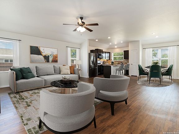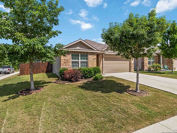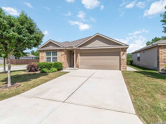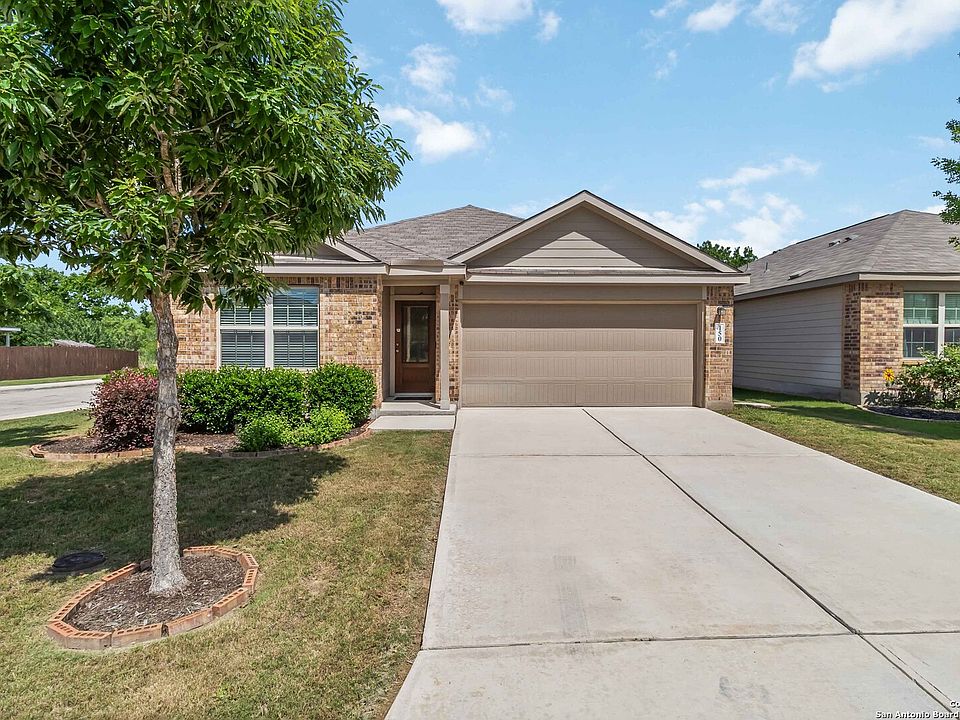 Welcome to this beautifully maintained, one-story home nestled on a corner lot in New Braunfels, offering serene greenbelt views. Featuring an open-concept layout with soaring 10-foot ceilings, upgraded lighting and ceiling fans throughout-creating a bright, airy ambiance perfect for both daily living and entertaining.The kitchen is a true highlight, showcasing granite countertops, a custom tile backsplash, stainless steel appliances (including a brand-new dishwasher), a large island with seating for two, under-cabinet lighting, and a charming window above the sink. Enjoy outdoor living with a private, fenced backyard that includes a covered patio and a Rainbird sprinkler system for easy lawn maintenance. The spacious primary suite offers comfort and style with an ensuite bath featuring a separate tub and shower and large walk-in closet. Additional features include a fully insulated garage with its own ac unit, a garage door opener, large attic with a radiant barrier, and plumbed for a water softener. The home also boasts a newer 3-ton A/C system for energy-efficient comfort. Located just minutes from Fisher Park, walking and jogging trails, major highways, shopping, dining, and the charming downtown area of New Braunfels, this home combines convenience with tranquility. Plus, benefit from a favorable tax rate -lower than nearby San Antonio.
