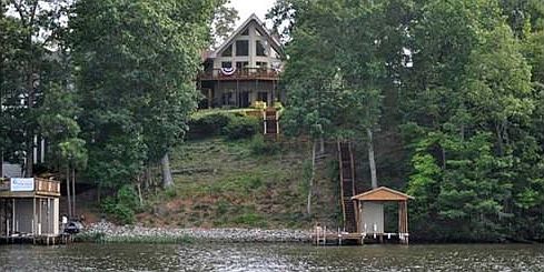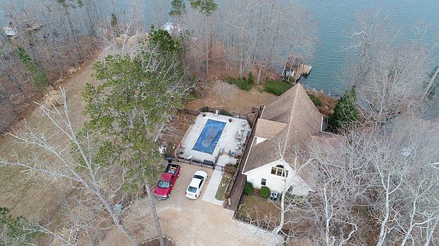 This meticulously low maintenance waterfront home is set up for enjoying "Lake Life"! Located in a upscale subdivision & minutes from I-85. It features year-round main lake views! Main floor is impressive with "Walls of Glass", wood/carpet flooring, 2 large bedrooms, full bath, fire place with gas logs and spacious kitchen. Upper lever has Master Suite w/ large master bath. The walkout basement has 2 undesignated rooms that are being used as bedrooms, full bath, recreation room & additional unfinished area for storage & laundry area.. It also features fiberglass, in-ground swimming pool w/ variable speed pump, heater (add 2-3 extra months for enjoying your pool), a low maintenance elect-cover & robot pool-cleaner. Insulated utility/work work shop, small green house & immaculate landscaping. Single B/H with Great water depth on main Lake. Make an appointment. today!!