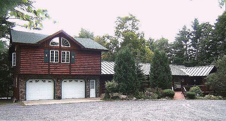 Log home, redone stained 2015, over size 2 car garaged heated, running brook, year round 2 bedroom rental cottage, 30X25 heated workshop, walkout basement, decking around house, formal dinning room, landscape property, oil hot water heat, Lake Geroge school, low taxes.
