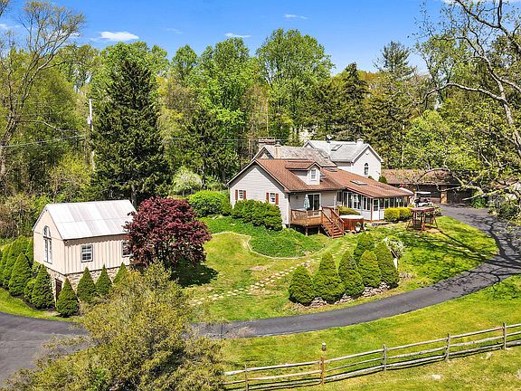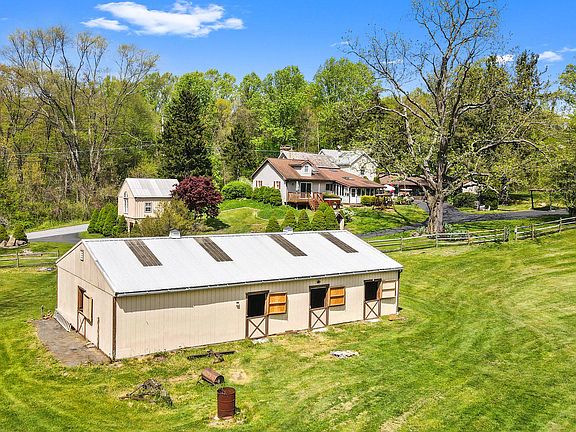 If you have interest in a unique, one of a kind, historical home, this is it! Welcome to the stunning 5.9 acre property, surrounded by the serine Stonewall golf club, and inclusive of an original replica tenant house on the Warwick Township Historic Property List. As you enter the property, you will be met by a paved driveway that leads to the main house. Mine Hole Road is a quiet, rarely traveled road, providing you with the utmost privacy. The horse barn features 5 stalls, complete with electric, water, and special bedding. The exterior Dutch stall doors open to the outside fields and a flat training area, surrounded by a split rail fence. Additionally, there is a non-freezing "flowing" water hole in the field for your horses' convenience. The separate stone and wood bank barn boasts 2 stories and a loft. The bank barn offers heat and electricity. An extra shed near the garage, gazebo in the field, swing off the Florida Room, hot tub off the "in law suite", and trellis over the extra parking to provide more shade on your cars, are all a bonus. Last but not least, there is a small "spring house" where the well equipment is housed. At side of the property runs a small stream. Enter the home through the Florida Room, which offers a utility sink, heat, windows, screens, mini fridge and skylights. The Florida Room leads to an entry hall with closets and a door that takes you to the kitchen. The kitchen is grand, featuring a custom table/island, skylights, oak cabinets, granite counters, & stainless steel appliances. Notice the exposed beams and an area perfect for a wine or coffee bar all adding to the home's charm. You will see the original stone and log walls that are shared with the DR, which dates back to 1757 and is the focal point of this home. The original stone fireplace (with later added mantle) are pieces of history that will take your breath away. Raised ceilings, deep window sills, recessed lighting, and wide plank floors (1/2 oak and 1/2 pine) are additional features of the historic DR. The Living Room features a bay window and stone (gas) fireplace, crown moulding, and a 2nd set of stairs to the upper level. 2 additional rooms on this side of the home (currently an office and TV room, yet could be play rooms, craft room, additional bedrooms, whatever your needs are!), full laundry and a full bathroom with a walk in jetted tub complete this area. One of these 2 rooms was used as a LARGE office with wood/vaulted ceilings, a heat source (propane), fan, and sliders to the front of the home. Through the next door, you will find the "TV room" with a brick fireplace/wood burning stove, and built in shelves. This room has French doors that take you outside next to the patio/on the driveway, and another door takes you out to the oversized/2 car garage. This room could also serve as a "drop zone" for muddy boots and rainy days. On the opposite side of the home (other side of the kitchen) is an "in law" suite where you will find 2 bedrooms, 1 full bath, laundry with utility tub, mini fridge, separate entrance from the private porch, (and also access through the home as well), and hot tub. Upstairs are 4 bedrooms, and 2 more full baths, bringing the grand total to 6 bedrooms and 4 full baths, (with ceramic tiles) and 2 sets of stairs to the second level. Most of the baths also have a skylight! The basement includes a workshop for your DIY projects. The location is unparalleled, being surrounded by a golf course, near French Creek State Park, Hopewell Furnace National Historic Site, Preserves, Land Trusts, Game Land, Elverson Fitness, and Saint Peter's Village. This 6+ bedroom and 4 full bath home has everything you need and more (and with extra "rooms" you can use the spaces as you see fit!), making it the perfect property for you and your loved ones (and maybe even horses and pets)!
