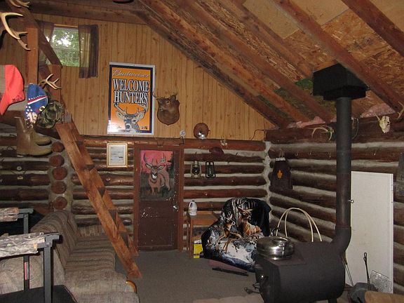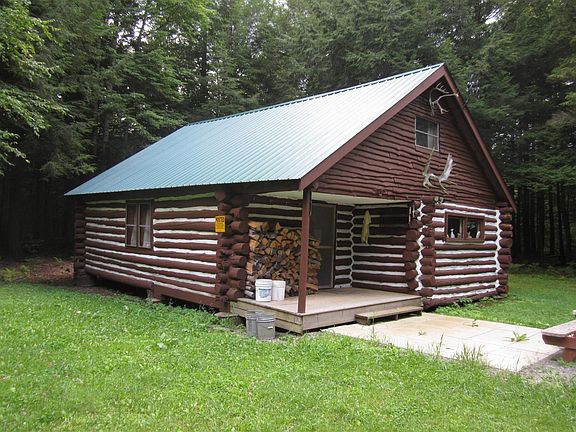 Fantastic hunting on this 38 acre mostly wooded parcel that borders state land. Log cabin with new steel roof-LED lights-generator hook up Kitchen-living room-sleeping loft can sleep 8-wood stove- very private location