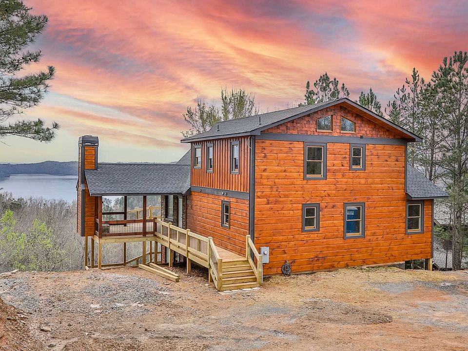 New Construction. (Pictures are representation of finished home.) This beautiful home boasts large great room with high ceilings & big windows to let the light shine in and enjoy the amazing view of the lake. Great room also has a stone wood burning fireplace. Master on main, bathroom has large shower with claw foot soaking tub. Kitchen features stainless steel appliances, beautiful walnut bar top and walk-in pantry. Upstairs has loft and 2 BR. First BR has a sweet loft bed with stairs for kiddo's to enjoy. Jack & Jill BA with glass shower door. Large basement with a wet bar, fireplace and fourth BR/BA. Laundry is also located in basement. Enjoy the beautiful views from the deck while sitting in front of the outside FP, or the hot tub on basement deck. Outdoor fire pit and plenty of parking. Very private location. Walking access to Carters Lake and a small fishing pond. A home with these views of Carters Lake are becoming rare and hard to find so grab it while you can....This one would make a great rental, perfect retirement home or 1031 Exchange.