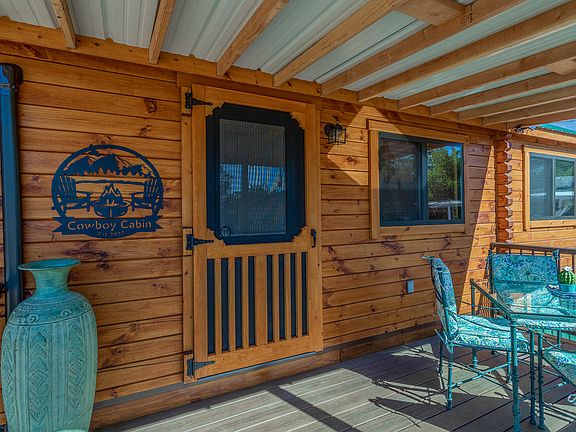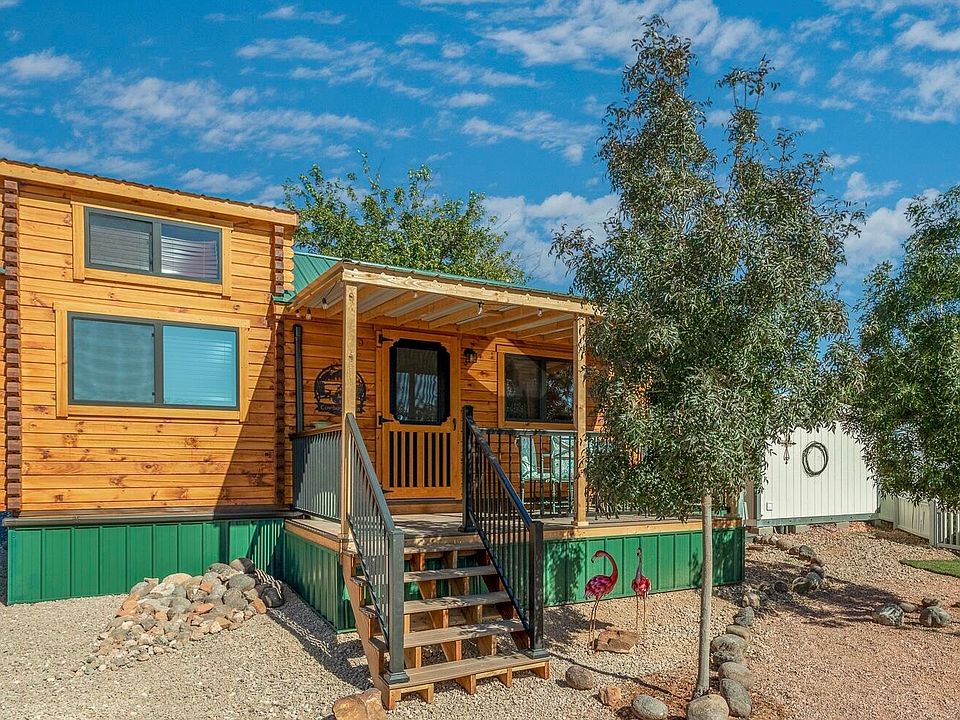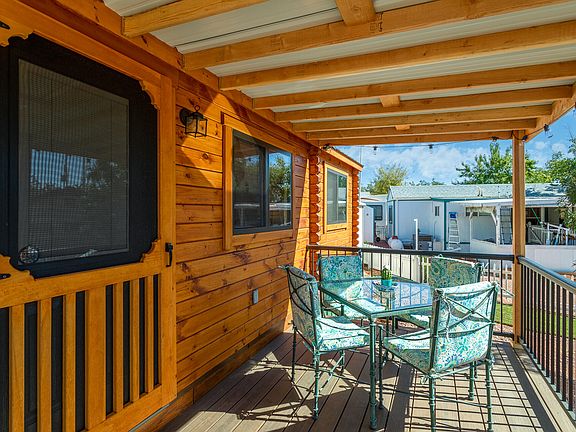Built by Amish master craftsmen. You'll love the beautiful knotty pine woodwork in an open vaulted-ceiling living area with dining room and kitchen. Two bedrooms and one bath plus a special loft area loved by kids makes this home comfortable, affordable, and enchanting. Built-in dining table, beds, and shelves enhance this well-built park model. The covered deck adds an inviting outdoor living space. The home includes the lot, a large shed (120 s/f) with washer & dryer and plenty of storage. As a resident of the charming and quiet Zions Gate RV Resort, you'll have access to the park amenities including clubhouse, swimming pool, hot tub, and more. Come see this fabulous cabin style home-you'll fall in love!